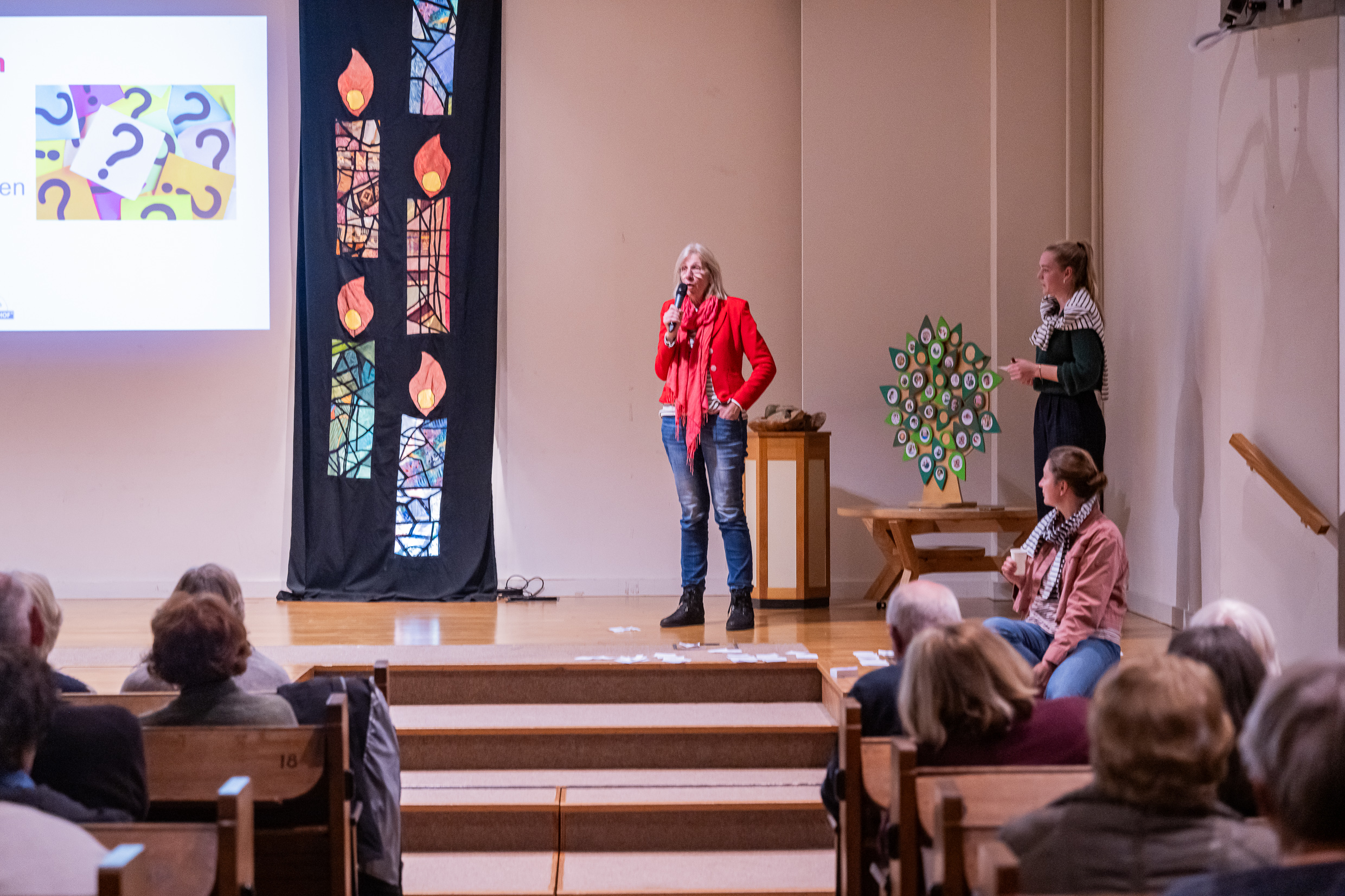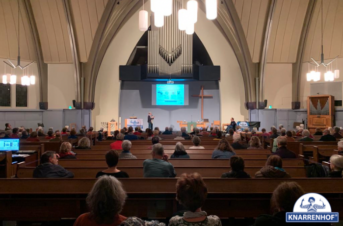 Ondanks dat u de afgelopen maanden weinig nieuws heeft ontvangen wordt er achter de schermen hard gewerkt aan Knarrenhof Zeist. Zo is Knarrenhof in gesprek met RK woningbouwstichting Zeist over huurwoningen in Knarrenhof Zeist. Daarnaast zijn we ook in goed gesprek de gemeente Zeist, Woongroep de Zeisterwerf, diverse ouderen organisaties en uiteraard met omwonenden. Samen met de lokale trekkers hebben we het volste vertrouwen dat Knarrenhof Zeist er gaat komen. Via deze website houden we u op de hoogte van de ontwikkelingen. Zodra er een doorbraak is hopen wij weer een informatiebijeenkomst te kunnen organiseren, net als de vorige bijeenkomst in de Noorderlicht Kerk (zie onderstaande afbeelding).